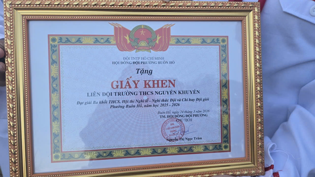 • TRƯỜNG THCS NGUYỄN KHUYẾN PHƯỜNG BUÔN HỒ VINH DANH GV VÀ HS ĐẠT GIẢI KỲ THI HS GIỎI TỈNH NĂM HỌC 2025-2026 (16/04/2026)